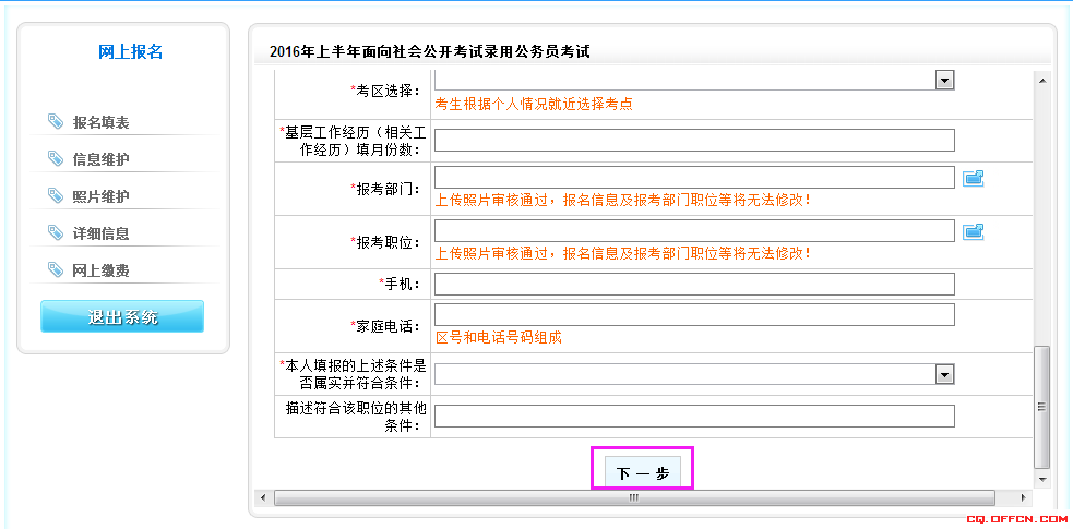 根據(jù)右側(cè)信息,填入報(bào)名信息表,點(diǎn)擊下一步: