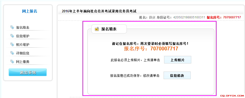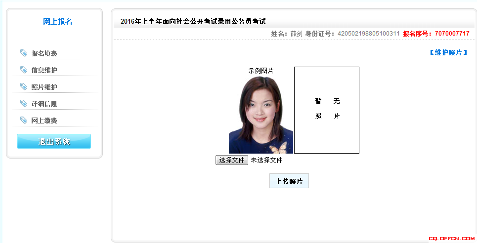 記住以下報(bào)名序號(hào),然后上傳照片。