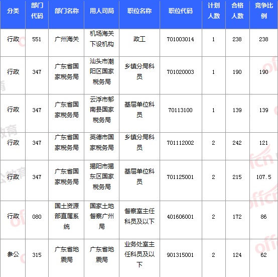 截至16日8時,招錄比例的職位為廣州海關(guān)政工一職,招錄1人,通過人數(shù)為238人