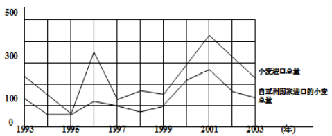 3.該國在哪一年,自亞洲以外其他國家進口的小麥數(shù)量最多?( )