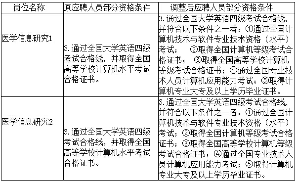 原標題:廣西醫(yī)學(xué)科學(xué)信息研究所關(guān)于調(diào)整2016年公開招聘崗位報名條件及延長報名時間的公告