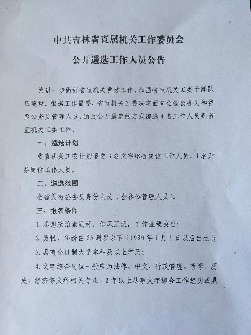 2015年吉林省直屬機(jī)關(guān)工作委員會(huì)遴選4人公告