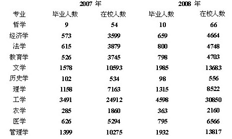 A.與2007 年相比,2008 年各專業(yè)畢業(yè)人數(shù)都有不同程度的上升