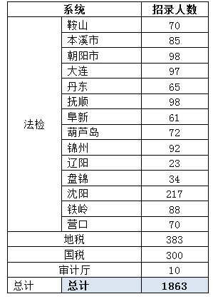 2016年3月25日,遼寧公務(wù)員考試公告發(fā)布,同時(shí),招錄計(jì)劃職位表、公共科目筆試大綱以及報(bào)考指南等重要考試信息一并發(fā)出,定于4月23日進(jìn)行筆試,于2016年3月27日9時(shí)至3月30日24時(shí)期間進(jìn)行網(wǎng)上報(bào)名。本次招錄計(jì)劃職位按照各系統(tǒng)進(jìn)行發(fā)布,其中法檢系統(tǒng)是本次考試的招錄大戶,招錄1170人,其次為地稅系統(tǒng)招錄383人,國稅系統(tǒng)招錄300人,審計(jì)廳10人,此外還面向公安院校公安專業(yè)2016年應(yīng)屆畢業(yè)生招錄960人,因?yàn)榇隧?xiàng)招錄計(jì)劃僅面向公安院校的應(yīng)屆畢業(yè)生發(fā)布,不向社會(huì)發(fā)布,因此,以下分析均不包含該項(xiàng)數(shù)據(jù)。