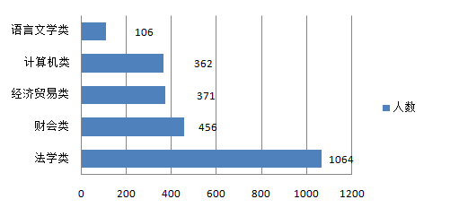 本次招錄法檢系統(tǒng)是招錄大戶,主要招錄有法律教育背景的人才,因此,法學(xué)類專業(yè)成為本次招錄中人氣的專業(yè),共招錄1064人,其次是財(cái)會(huì)類專業(yè),招錄456人,經(jīng)濟(jì)貿(mào)易類與計(jì)算機(jī)類專業(yè)基本持平,有這些專業(yè)背景的考生在選職位時(shí)范圍比較廣,機(jī)遇較多。