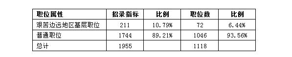 本次考試招錄艱苦邊遠地區(qū)職位所占比重并不高,僅占到總職位數(shù)的6.44%,93.56%的職位是普通職位,考生們可以安心報名,不必擔心工作、生活條件艱苦等因素,放心大膽地進行選擇。